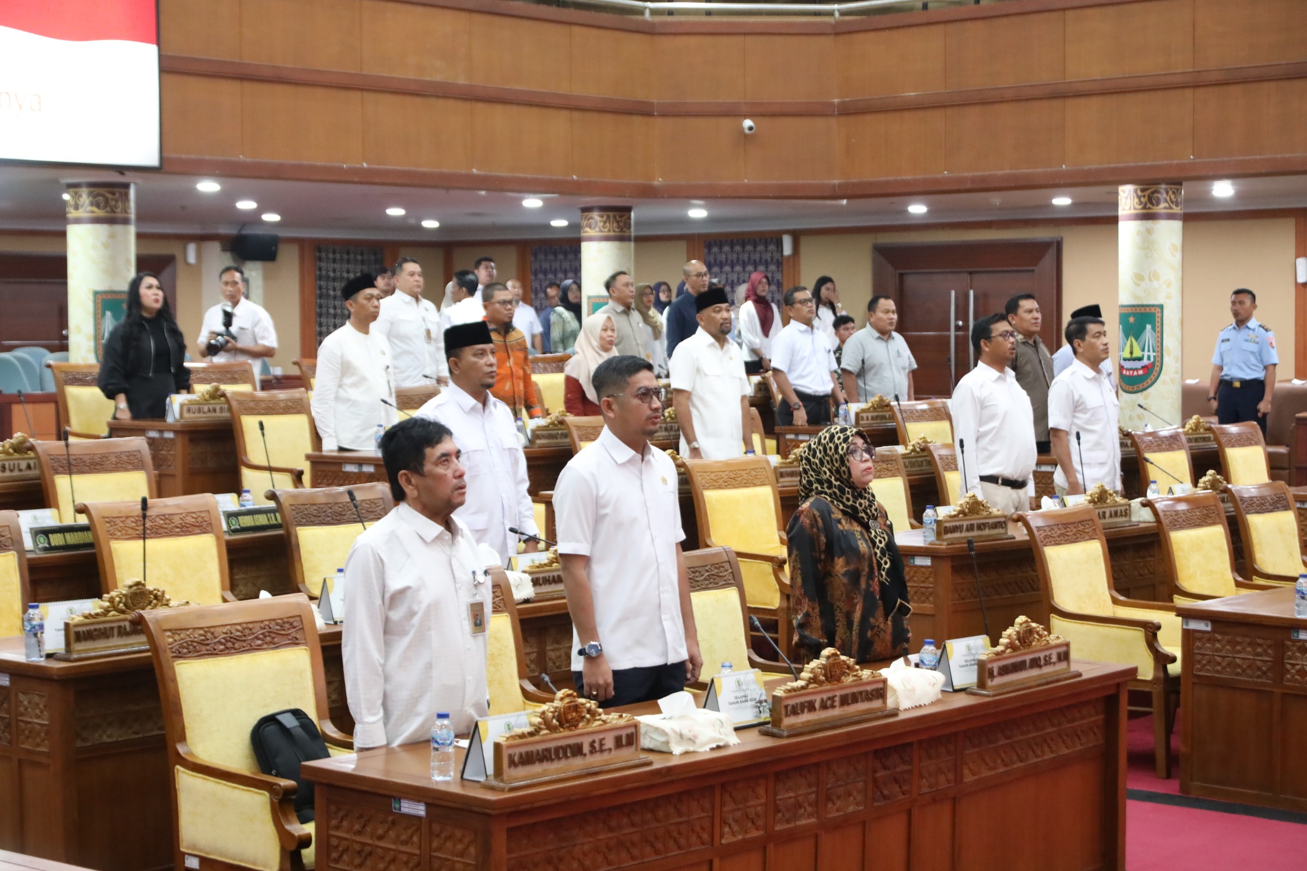 Rapat paripurna tersebut dipimpin langsung Ketua DPRD Kota Batam Haji Muhammad Kamaluddin, didampingi Wakil Ketua I Haji Aweng Kurniawan dan Wakil Ketua II Budi Mardiyanto, SE, MM. Dari pihak eksekutif hadir Sekretaris Daerah Kota Batam Firmansyah yang mewakili Wali Kota Batam Amsakar Achmad.